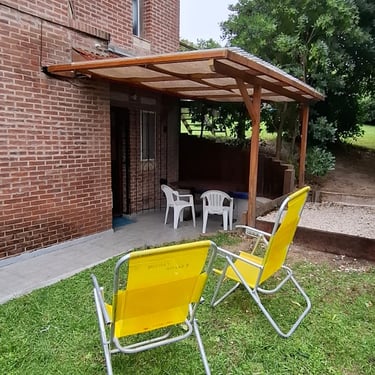 Cómodo estacionamiento descubierto en el frente. Cochera cubierta para cuatriciclos o Kayaks (Consultar disponibilidad).